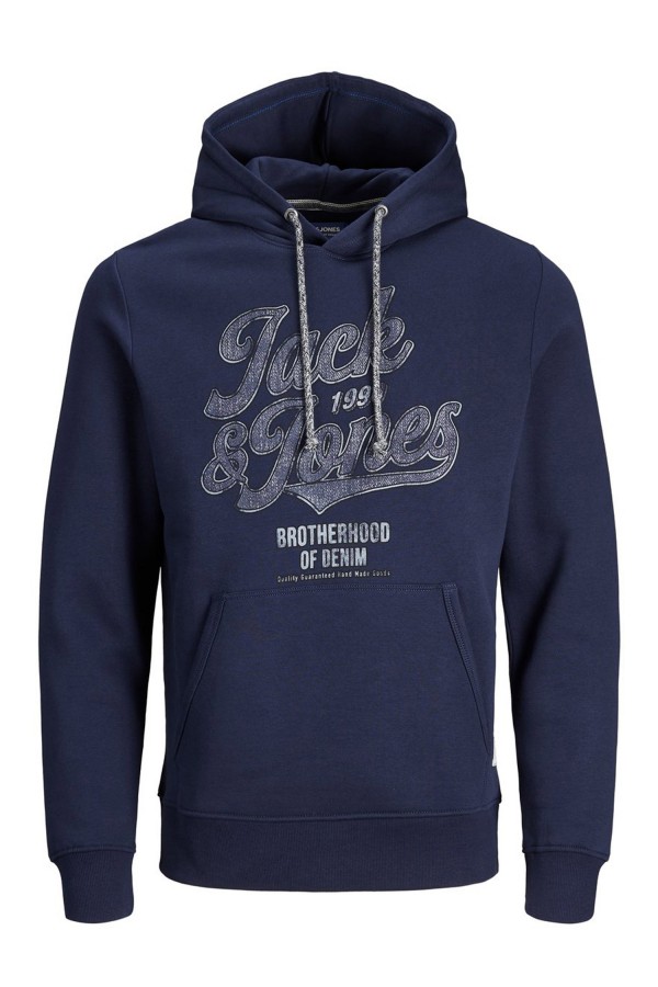 Capuchontrui van het merk Jack & Jones met kangaroezakken. De grote maten hoodie (J&J art. nr. 12178682) heeft een grote borstprint met een denim look voor een stoere uitstraling. De koordjes van de capuchon hebben een contrastkleur. De brede boorden aan de manchetten en de brede zoom maken de xxl pullover extra comfortabel. De plus size trui is gemaakt van biologisch katoen, wat de hoodie een duurzaam karakter geeft.