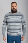 Grof gebreide trui van het merk Kitaro (art.nr. 205319) met Noorse motieven. De grote maten trui heeft een ronde hals en de manchetten, zoom en hals zijn voorzien van een brede boord voor extra draagcomfort. Heerlijk casual tijdens frisse dagen!