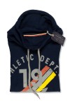 Trui van het merk Redfield. De grote maten trui heeft een opstaande kraag met trekkoordjes in een contrastkleur. Op de borst is de xxl trui bedrukt met een kleurrijke print. De versleten look van de print geeft de sweater een stoere uitstraling.