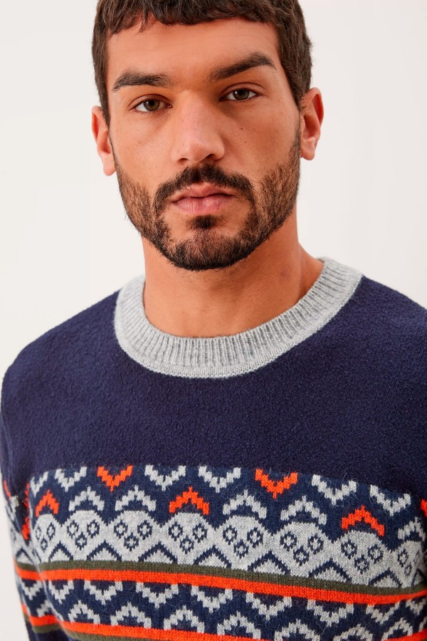 Trui uit de grote maten collectie van het merk s.Oliver. De casual trui is gemaakt van een wolmix en heeft een ingebreid motief in winterse sferen. Het ribboordje aan de manchetten en de ronde hals biedt net als de geribde rand aan de zoom extra comfort én draagt bij aan het stijlvolle uiterlijk van de plus size trui.