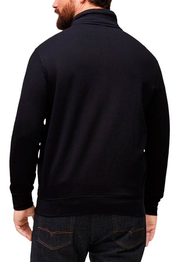 Sweatvest van het merk s.Oliver. Het grote maten vest is gemaakt van 100% katoen. Het xxl vest biedt een zeer hoog draagcomfort. De binnenvoering is licht geruwd en zeer zacht, wat het vest uiterst aangenaam maakt om te dragen. De elastische ribboorden aan de manchetten en de onderkant bieden daarnaast in combinatie met de regular fit extra comfort. Aan beide zijden is het vest voorzien van een steekzak. De subtiele borstprint geeft het plus size vest een sportieve uitstraling. De opstaande kraag met koordjes, is aan de binnenzijde voorzien van een contraststof.